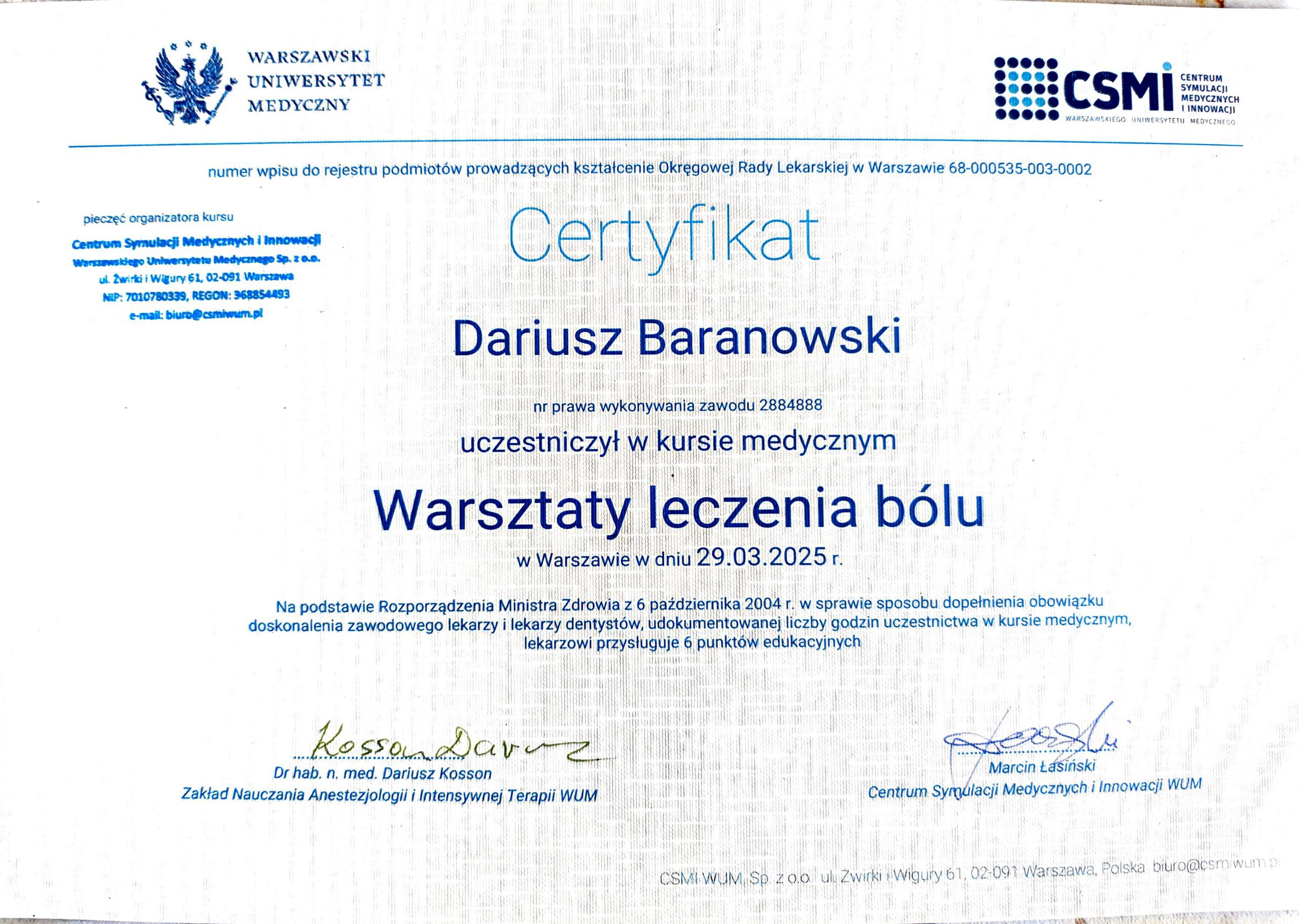 Leczę zgodnie ze standardami a aktualizując wiedzę korzystam z polskiej i zagranicznej literatury oraz kursów doszkalających. Interesuję się wynikami badań klinicznych dotyczących nowych terapii.